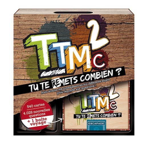 « Un jeu de QUIZ ? T’es SÉRIEUSE ? » Comme d’hab', je joue avec Captain Ronchon et Grincheux 1er. Mais il faut admettre que, si je n’avais pas connu TTMC, au vu du plateau à la Trivial Pursuit dans le couvercle et des piles de cartes question (dont le thème « Scolaire »), j’aurais sans doute envoyé un SMS discret à ma sœur pour qu’elle m’appelle en feignant l’urgence.