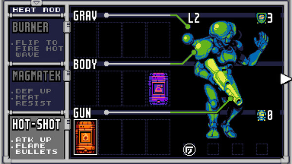 GRIMSTONE - Oui, il y a bien tout un JRPG dans cette compilation ! Grimstone épouse les grandes conventions du RPG 8-bit, mais l’optimise pour un public moderne. Pour rendre les combats plus intéressants, nous leur avons ajouté un élément d’adresse, tandis que les rencontres sur la carte du monde peuvent être évitées stratégiquement. L’histoire a lieu dans l’Ouest américain, où les terres semblent avoir été avalées par l’Enfer ! Créez votre équipe sur les cendres encore fumantes d’un saloon, et partez à la recherche des causes de ce cataclysme.