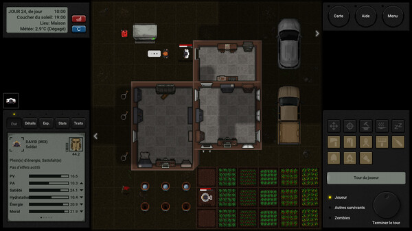 Choisissez soigneusement votre prochain mouvement ! Chaque mouvement, action et décision que vous prenez réduit vos points d'action (PA). La gestion stratégique de vos PA est la clé de votre survie. Si vous en utilisez trop peu, vous risquez de ne pas trouver les ressources nécessaires à votre survie. Si vous en utilisez trop, vous risquez d'être attaqué.