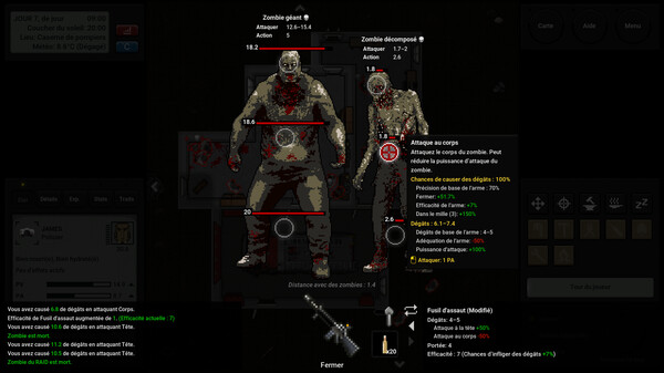 Choisissez parmi un large arsenal d'outils et d'armes pour attaquer la horde de zombies qui arrive. Choisissez les parties du corps que vous voulez frapper et expérimentez avec les innombrables options proposées - en cas de doute, coupez la tête ou détruisez le cerveau !