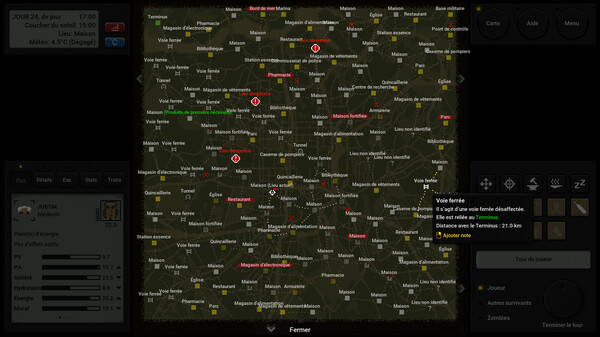 Chaque périple de survie est différent, car la ville dans laquelle vous vous battrez pour survivre est générée de manière procédurale. Plus de 150 lieux différents sont générés, avec de nombreux endroits à découvrir, des centaines d'objets à récupérer et une infinité de zombies à éviter ou à combattre. Il n'y a pas deux parties identiques, mais le voyage vers le Terminus est toujours aussi palpitant.