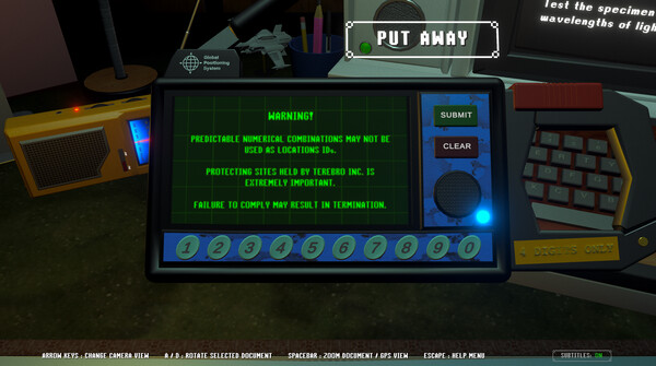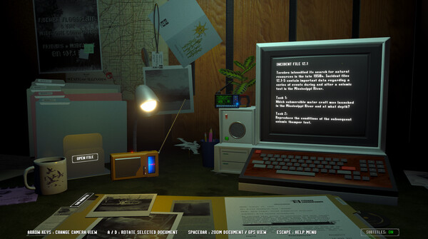 The nature of this game requires deciphering audio and visual clues. For increased accessibility, high-contrast, large-font subtitles are enabled by default and can be toggled on and off. Character dialogue is stored in the help menu as text and audio files for review. File folder contents and GPS maps can be inspected at a larger scale with a zoom-capable camera.